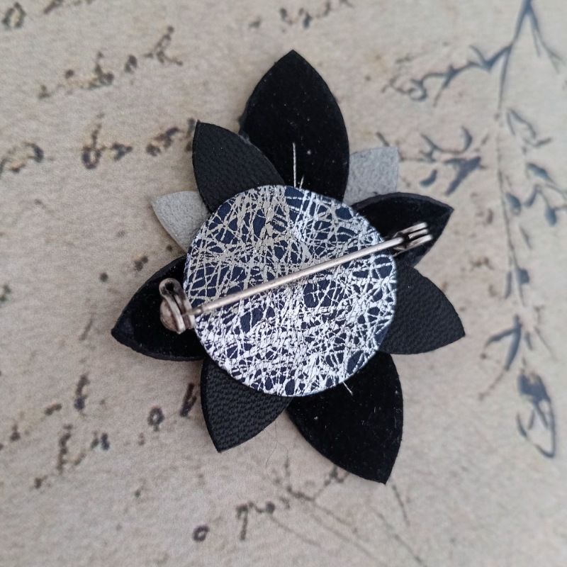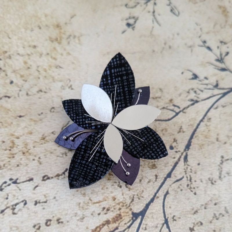 Broche fleur Luna Bloom – Cuir coloris noir argenté ou rose