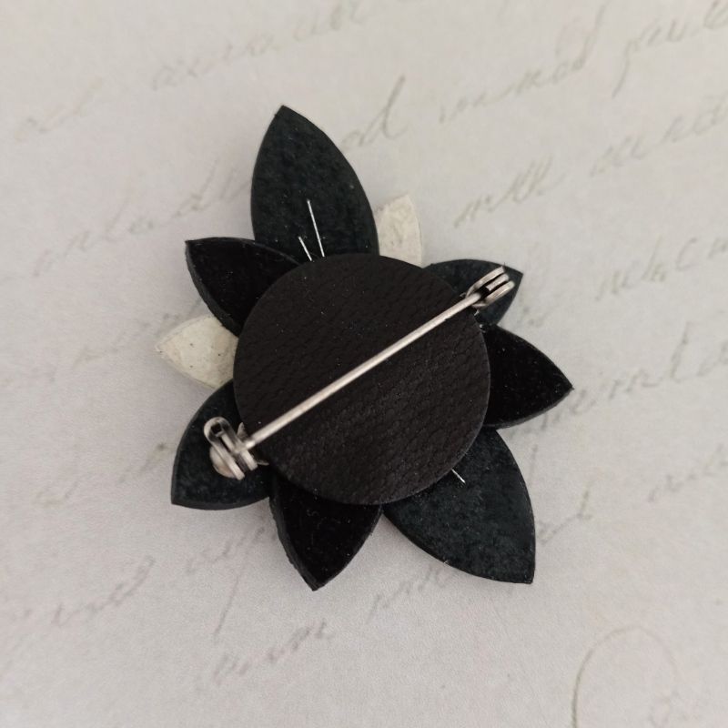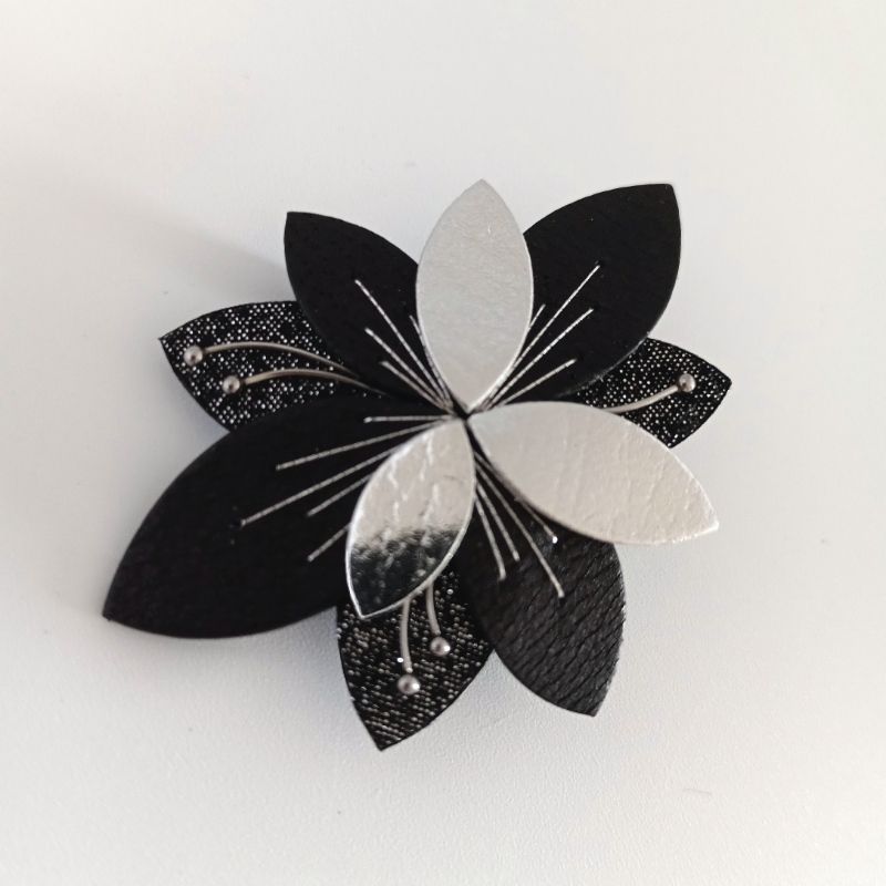 Broche fleur Luna Bloom – Cuir coloris noir argenté ou rose